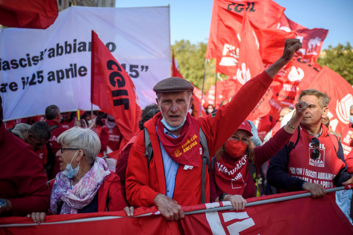 Decenas de miles de personas marcharon este sábado en el centro de Roma para protestar contra el fascismo y pedir la ilegalización de movimientos surgidos de esa ideología, en una demostración de la fuerza de los sindicatos italianos, que se alzaroncomo “la nueva resistencia”, una semana después de que la sede del mayor de ellos, la CGIL, sufriese un violento asalto a manos de militantes neofascistas.
