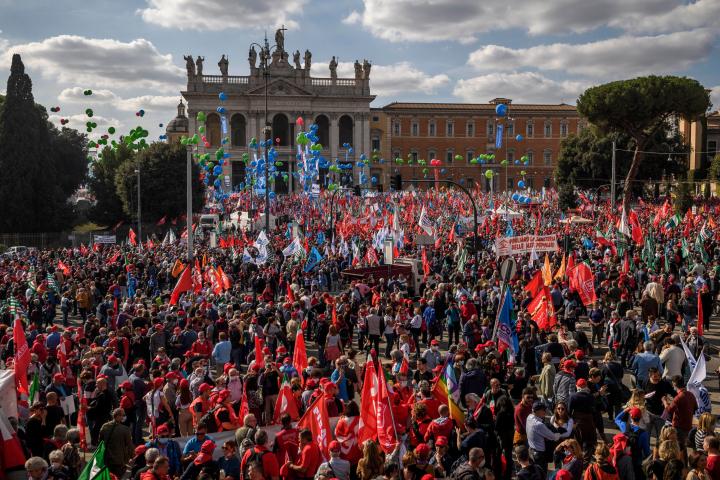 Más de 100.000 personas protestan en Roma tras el ataque fascista a la sede del sindicato CGIL.