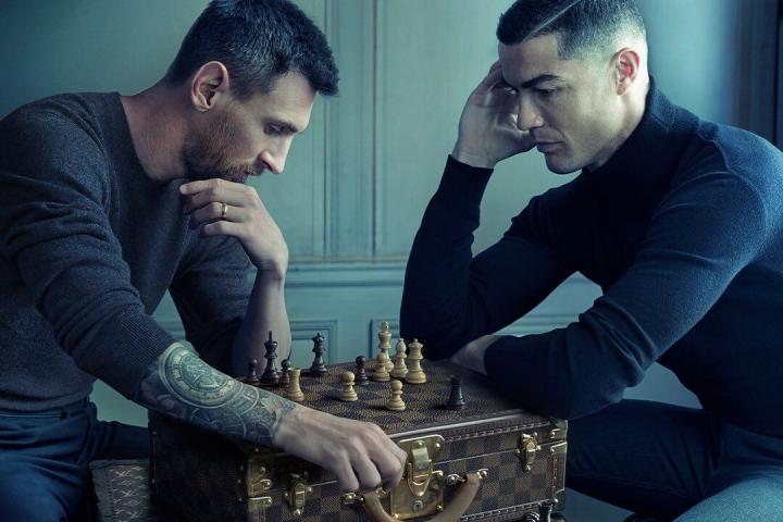 Messi y Cristiano tienen una última oportunidad para hacer algo grande en una Copa del Mundo, quizá por ello la marca de lujo haya querido reunir a las dos estrellas del fútbol en una inusual imagen: ambos aparecen jugando una partida de ajedrez sobre el clásico maletín de Louis Vuitton y un eslogan: “La victoria es un estado mental”.