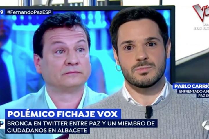 Pablo Sarrión, un miembro de Ciudadanos, y Fernando Paz, el cabeza de lista de Vox por Albacete, han tenido un encontronazo en Espejo Público (Antena 3), el programa de Susanna Griso.