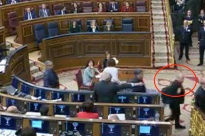 Durante la salida de Rufián del hemiciclo tras su expulsión.