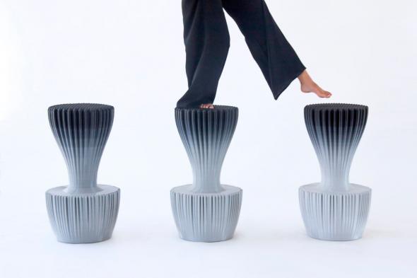 La botánica y la robótica se unen en el siguiente diseño bajo el nombre de Robótica TM, diseñado por Ross Lovegrove. Construido a partir de una geometría rotacional y su acceso formal de 306º, su función es indirectamente inteligible y adaptable, pudiendo utilizarse tanto como taburete como mesa. Satisface cualquier necesidad auxiliar dentro del hogar.