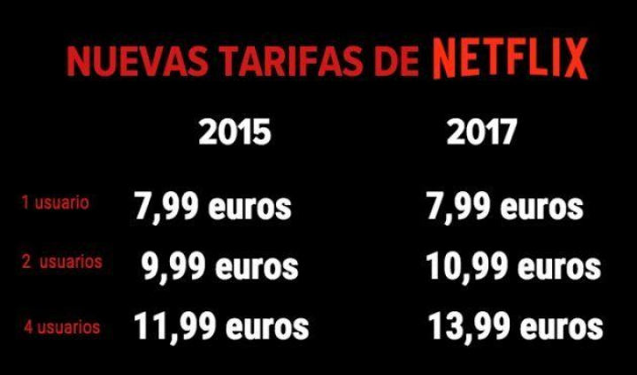 En el mes de la vuelta de Stranger Thingsy del estreno deFe de Etarras, la televisión online anuncia nuevos precios para los suscriptores de las cuentas para dos y cuatro usuarios. Los que tiene el perfil básico se quedan tal como están y los otros verán incrementado su pago en uno y dos euros respectivamente. Los precios quedarían así.