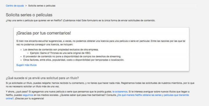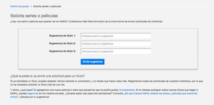 Cubierto el formulario con los tres títulos (o los dos, o el título) deseados, sólo queda esperar. Netflix se compromete a avisar a los usuarios cuyas peticiones sean atendidas.