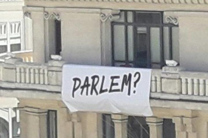 Las dos sábanas solitarias que aparecieron en la Gran Vía de Madrid, "PARLEM?" y en Barcelona, "HABLEMOS" son la poca luz que he encontrado estos días. Soñé esa noche que me despertaba al día siguiente y de manera espontánea había miles de sábanas blancas por toda España ofreciendo: "PARLEM?" y que con la misma espontaneidad un montón de catalanes y catalanas respondíamos a esa oferta con determinación: "HABLEMOS".