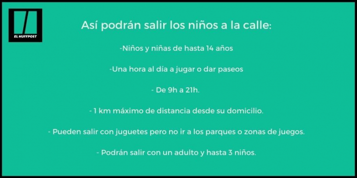 Todo esto, acompañados de un adulto y que se podrá encargar de un máximo de tres menores de 14 años en cada salida. Ese adulto podrá ser un hermano mayor, pero siempre debe ser mayor de 18 años.