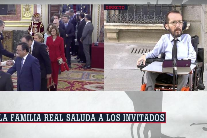 A la llegada de Felipe VI al hemiciclo, los diputados y personalidades que allí se encontraban han recibido con una ovación al monarca. En ese momento, Ferreras ha comentado: “El vicepresidente Pablo Iglesias aplaude la entrada de Felipe VI. Alberto Garzón, Irene Montero, absolutamente todos los miembros del Gobierno de Unidas Podemos del Gobierno, porque Pablo Echenique si ven, ahí en el centro, no está aplaudiendo”.