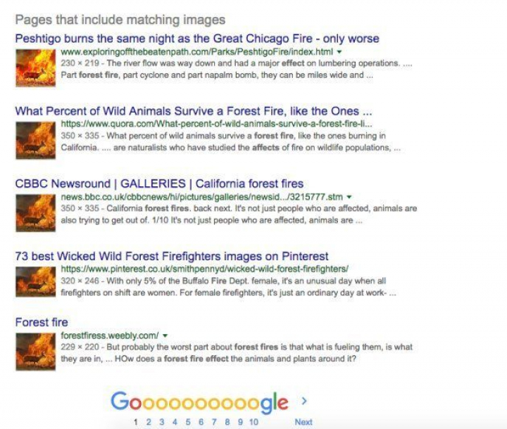El problema es que esa foto no se corresponde con los incendios de este fin de semana. Una simple búsqueda en Google nos permite ver que la foto se remonta varios años atrás y que incluso aparece en una galería de la cadena norteamericana CBS sobre los incendios de 2003 en California (EEUU).