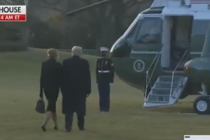 De la mano de su esposa, Melania Trump, vestida completamente de negro y con sus típicas gafas de sol oscuras, los Trump han abandonado la Casa Blanca en helicóptero. La familia aterrizará en Mar-a-Lago (Florida), donde tiene su mansión, a las 11 de la mañana hora local.