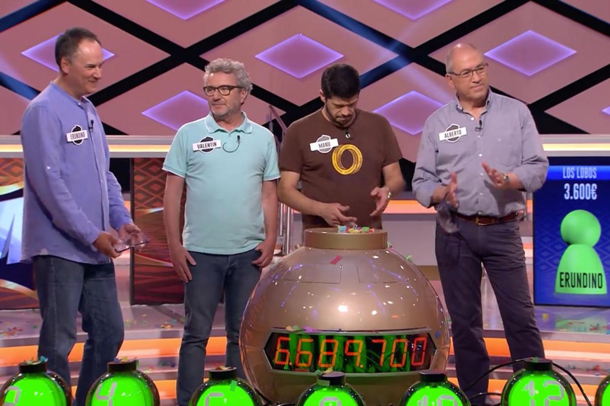 Los Lobos ya son historia de la televisión. El equipo de Boom (Antena 3) formado por Erundino, Valentín, Manu y Alberto se llevaron este lunes el bote del programa, 4,1 millones de euros.