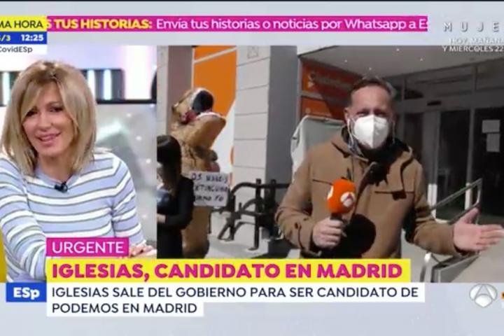 A las puertas de la sede de Ciudadanos, los periodistas han captado una escena de lo más extraña. A las puertas del edificio se ha podido ver a una persona disfrazada de dinosaurio con un cartel en el que se podía leer: “Os habéis extinguido como yo”.