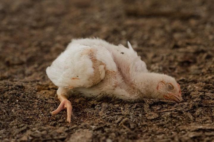 La industria avícola ha convertido al pollo en una mera materia prima cuya vida se rige por dos condicionantes: el hacinamiento y el engorde. Con respecto al primero, la legislación vigente permite densidades de animales tan altas que hace que cuenten con menos espacio incluso que si estuviesen en una jaula. Hay tantos animales en las naves en las que viven que les es imposible andar, correr o desarrollar cualquiera de sus comportamientos naturales. Además, los pollos criados para carne han sido seleccionados genéticamente para crecer lo más rápido posible en el menor tiempo. Como consecuencia de esa selección genética, sus cuerpos crecen de forma desproporcionada y sus patas muchas veces no pueden aguantar su propio peso. Esta inmovilidad favorece su engorde. Es así como sus propios cuerpos acaban convirtiéndose en sus jaulas.