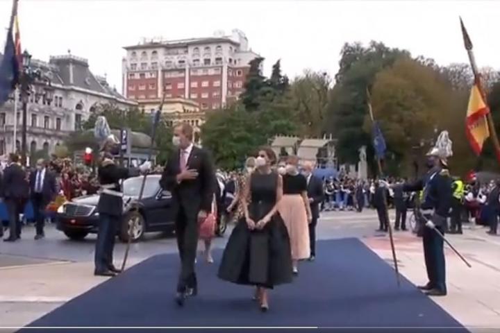 La familia real ha llegado puntual a su cita con los Premios Princesa de Asturias en el Teatro Campoamor de Oviedo, cerca de donde se ha producido una reunión de personas de lo más diferentes.