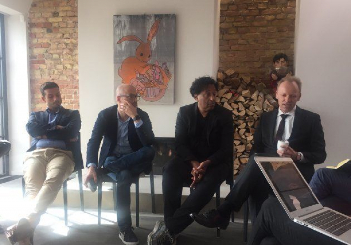 Clemens Fuest (derecha), junto a Nikos Agouros (izq.), de HuffPost Grecia y Sebastian Matthes y Cherno Lobatey (HuffPost Alemania).HUFFPOST