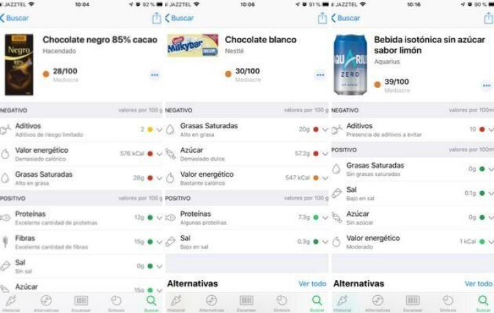 “Por ejemplo, un chocolate negro 85%, que yo considero un buen procesado, tiene la misma calificación que un chocolate blanco, que sería ultraprocesado”, explica. Y luego está la segunda pantalla, en la que se destripan los ingredientes. “A veces la clasificación es mala, pero se puede percibir el producto como positivo. Sucede con los refrescos edulcorados, con un ‘mediocre’ por tener aditivos, pero en los que se destaca de manera positiva su bajo contenido en grasas, azúcares o calorías”.