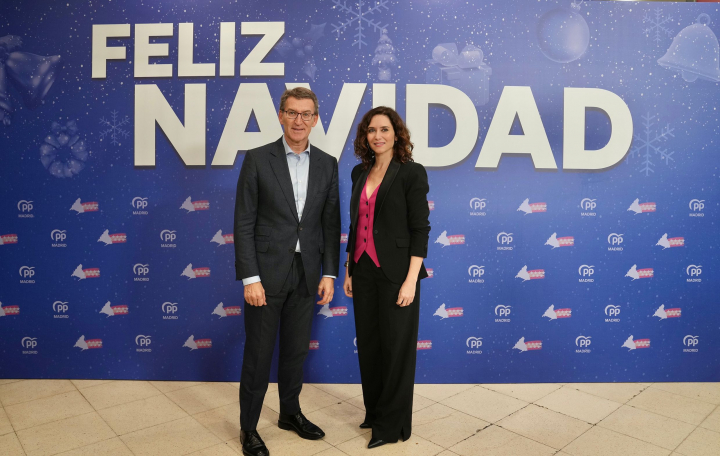 Ya es Navidad en el Partido Popular. Alberto Núñez Feijóo e Isabel Díaz Ayuso han vivido su particular noche de paz entre las canastas del polideportivo Antela Parada de Alcobendas, en el que ante un millar de afiliados se ha celebrado la tradicional cena navideña de los populares madrileños.