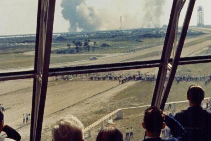 Empleados de la NASA observan el lugar de despegue de la misión Apolo 11, en Florida.NASA