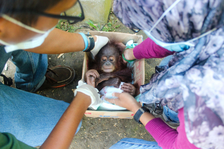 El bebé orangután Udin es rescatado del comercio ilegal de mascotas salvajes.BBC/International Animal Rescue