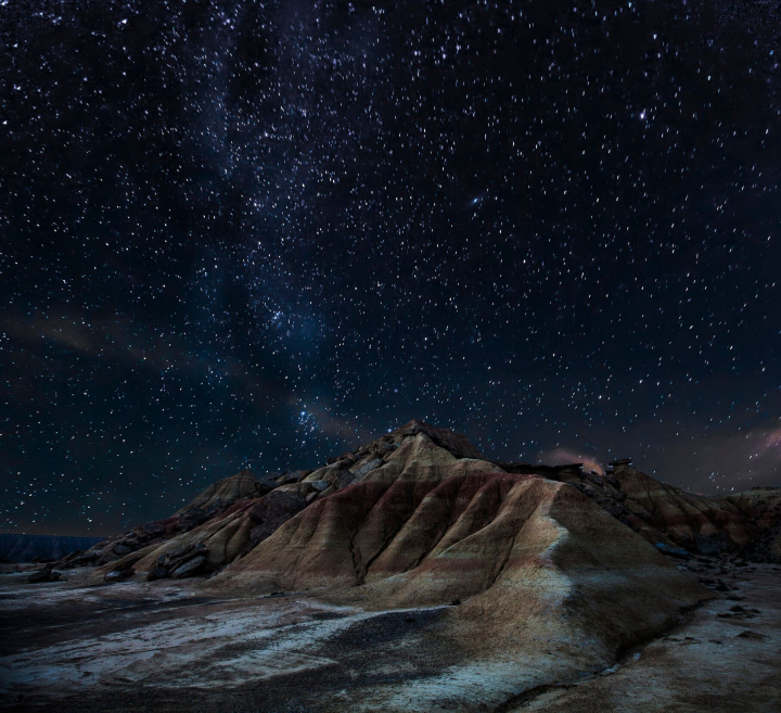 El singular paisaje del desierto de las Bardenas Reales (Navarra), declarado Parque Natural y Reserva de la Biosafera por la UNESCO, es ideal para entretenerse observando su cielo, que parece estar más cerca gracias a la oscuridad de este entorno.