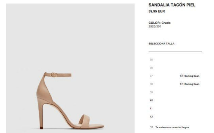 En el caso de que el artículo se haya agotado y Zara no lo vaya a reponer, en vez de Coming soon aparecería el aviso Out of stock (fuera de stock).