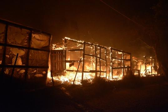 Según informa la televisión pública ERT, los incendios se han producido en el olivar que rodea las instalaciones y están quemando las pocas carpas que quedaban.