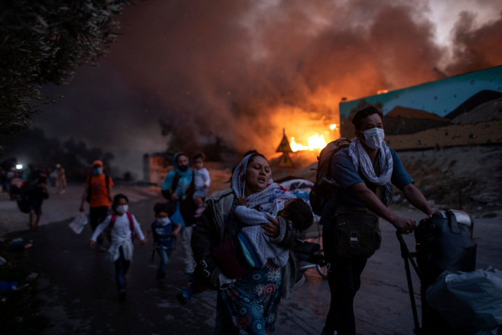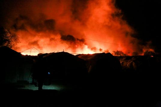 Nuevos incendios consumen las ruinas del campo de refugiados de Moria