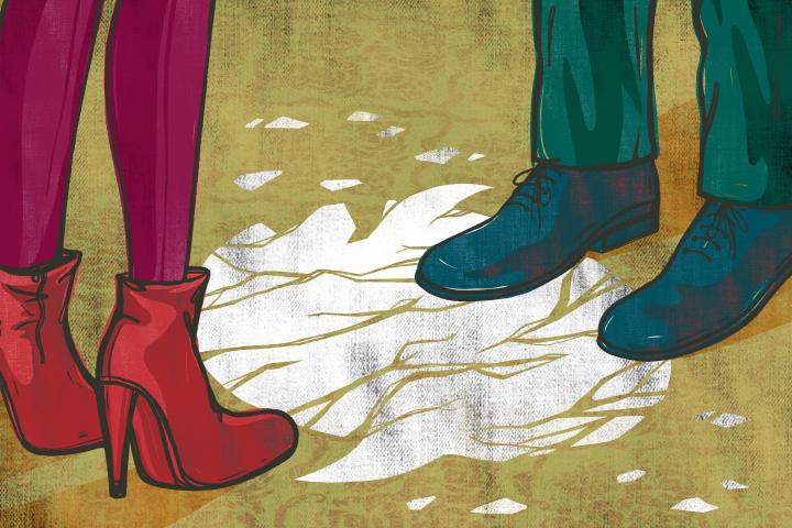 Illustrative image of couple standing on cracked floor representing relationship difficultyGetty Images