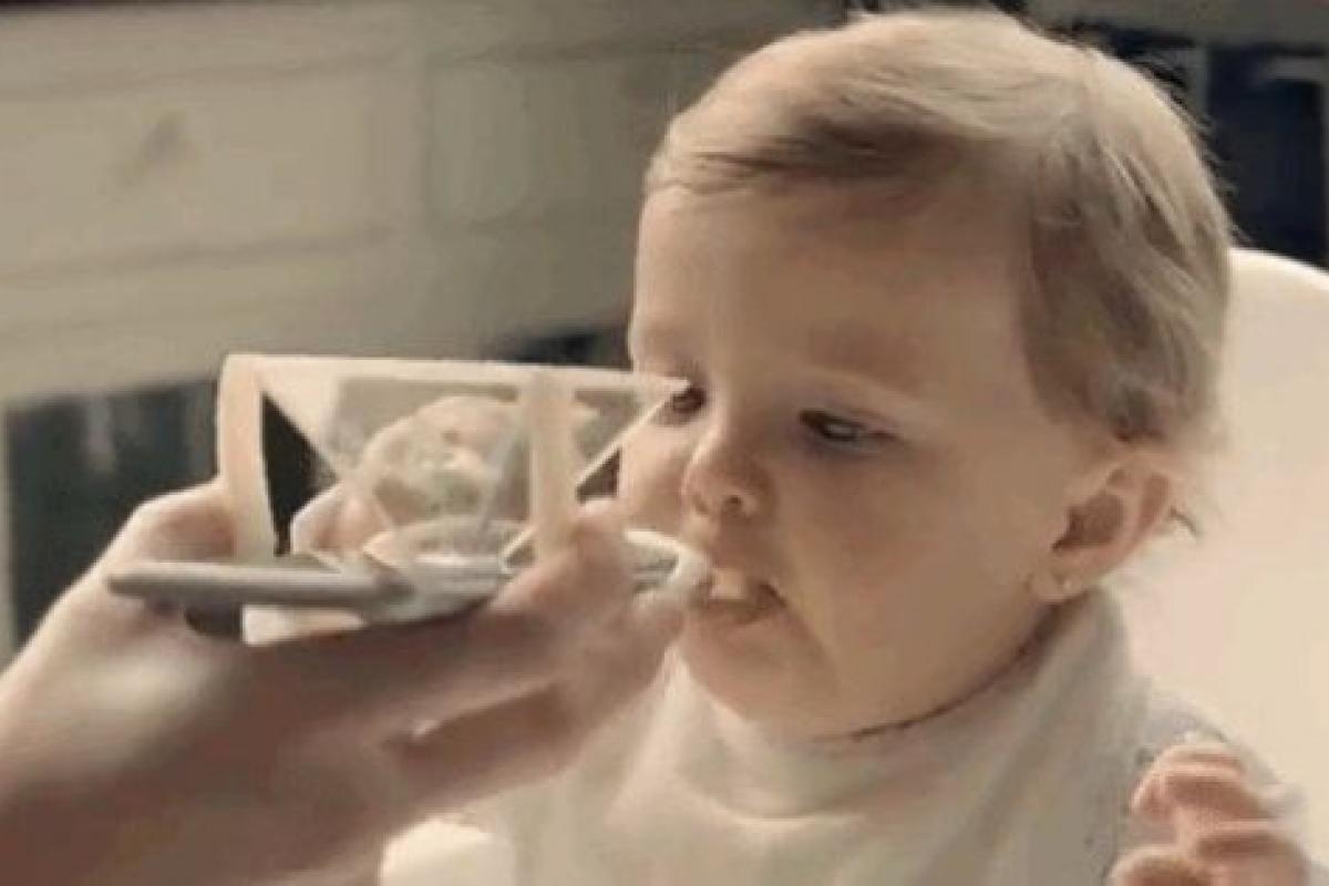 El sistema creado por la marca de productos infantiles para ayudar a los padres a la hora de dar de comer a los bebés consistía en una cuchara con un soporte para el móvil y una ventana que reflejaba lo reproducido en la pantalla. Así: