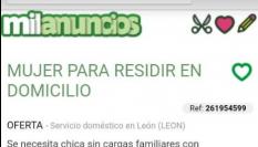 El texto de la oferta describe a una familia de tres miembros: “Somos agradables, abiertos, leales, sencillos, humildes... ¡Humanos! [...] En realidad, más que alquilar la habitación buscamos una ayuda en las labores del hogar y cuidado del pequeño. Limpieza, llevar al colegio, cuidarle... ¡y algún finde noche! El precio se pactaría acorde con la persona”, detalla la supuesta oferta junto con la petición de que sea una chica.