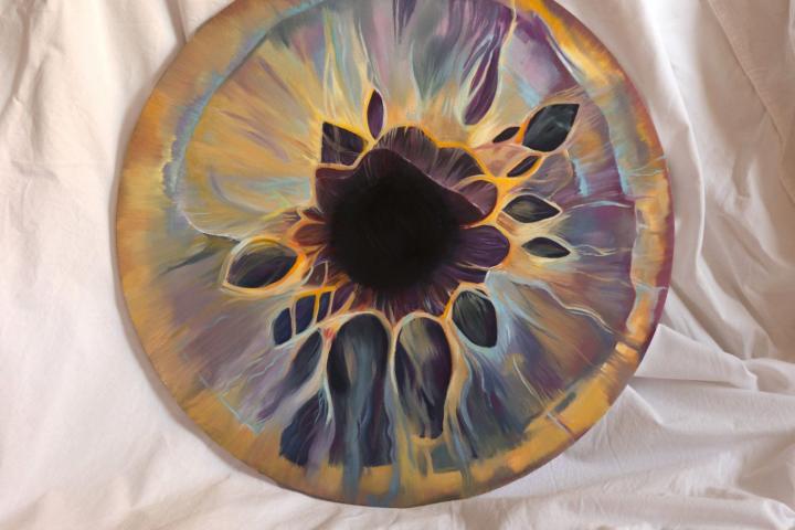 Lienzos redondos donde únicamente se puede observar un iris, que sumerge al espectador en una nube de colores y sombras, de tonos claros y oscuros, donde no se puede conocer la identidad del portador. Una artista definida prácticamente, por un estilo hiperrealista y obsesionada con la mirada de las personas, con descubrir qué colores se ocultan tras ellos, darles una oportunidad propia, un alma.