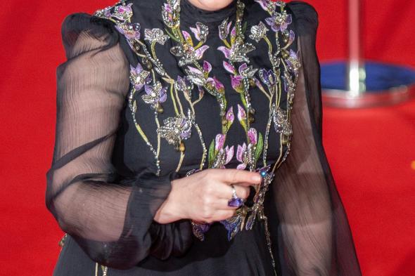 La intérprete ha lucido un vestido de Stella McCartney terciopelo azul con distintos tejidos y botones joya con una capa doble que le ha jugado una pequeña mala jugada en su paso por la alfombra roja. Aunque como era previsible en la británica, se lo ha tomado con gran sentido del humor.