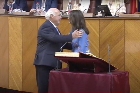 “Hoy he conocido al Presidente @ParlamentoAnd. Y ha sido un gran momento: - ‘Presidente, nos va a dar tardes de gloria. Ya le imagino: Olona, le llamo al orden. - No, mujer. Yo te miraré y te guiñaré un ojo para avisarte’. Desarmada”, ha escrito Olona.