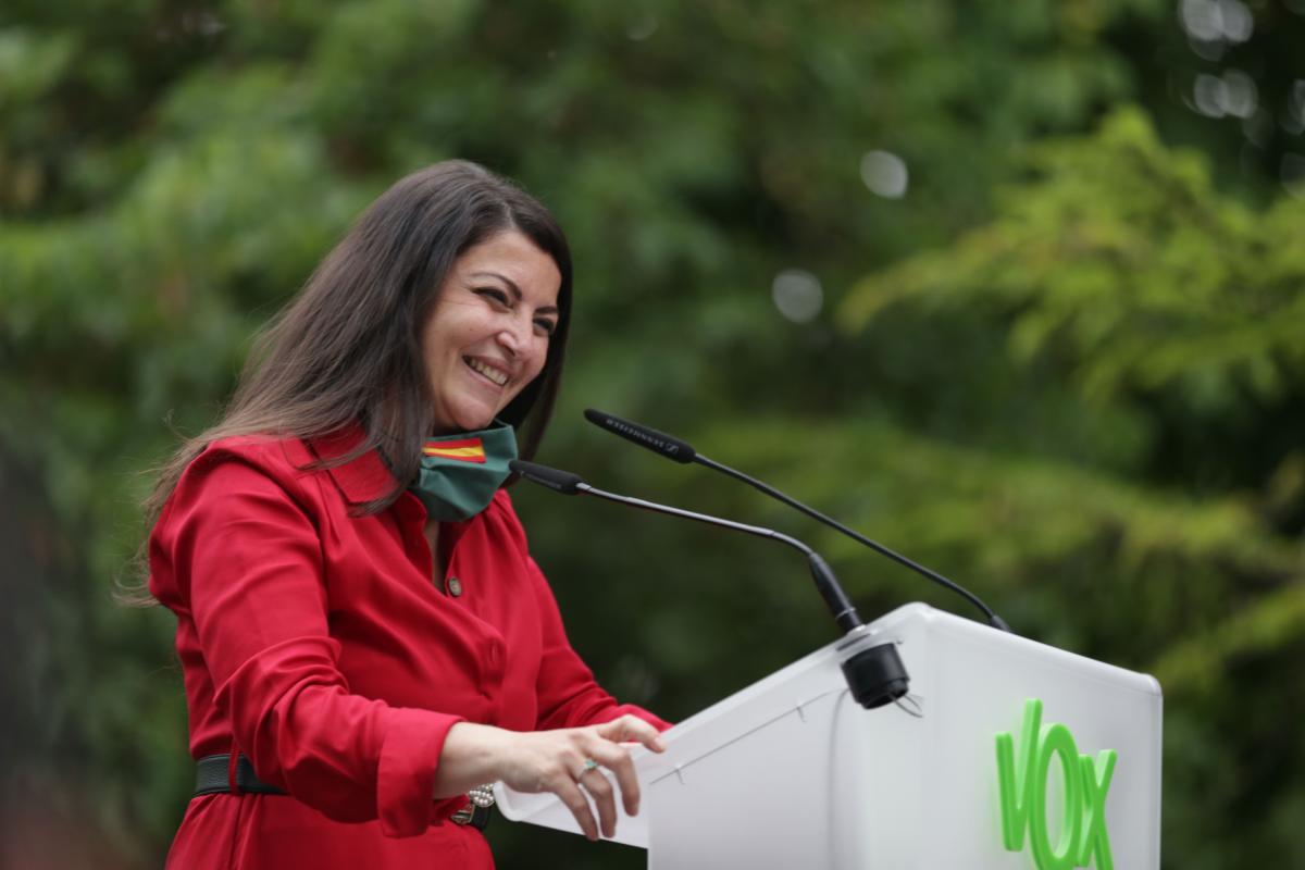 La portavoz parlamentaria ha dicho que asume la campaña electoral “con muchísima ilusión” y que no van a dar “ni un paso atrás” ante quienes, desde Unidas Podemos o desde movimientos denominados antifascistas, hacen llamamientos a boicotear actos de Vox.