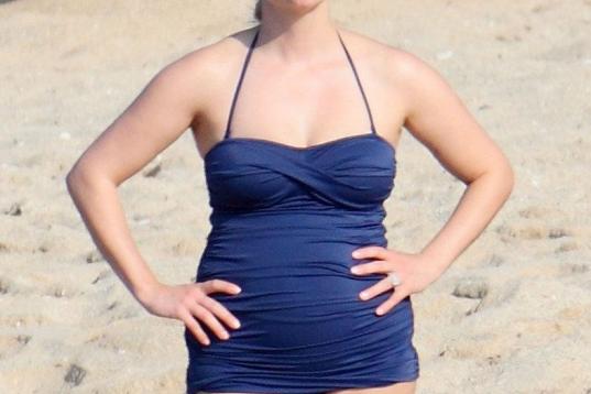 Ona Carbonell muestra su cuerpo en la playa en la recta final de su embarazo