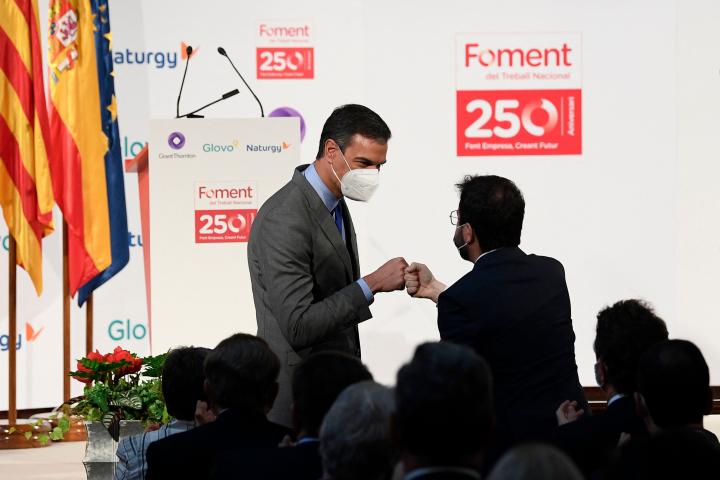 Este movimiento de Esquerra ha pillado precisamente a Pedro Sánchez en Barcelona, donde ha coincidido por primera vez en un acto de Foment de Treball con Pere Aragonés, tras su elección como presidente. Con saludo afectuoso con puño. Los dos mantienen fuera de foco una buena relación y se han intercambiado llamadas y mensajes. Desde La Moncloa se espera que este gesto sirva para establecer una mejor relación entre administraciones y por buscar ese tiempo de paz.