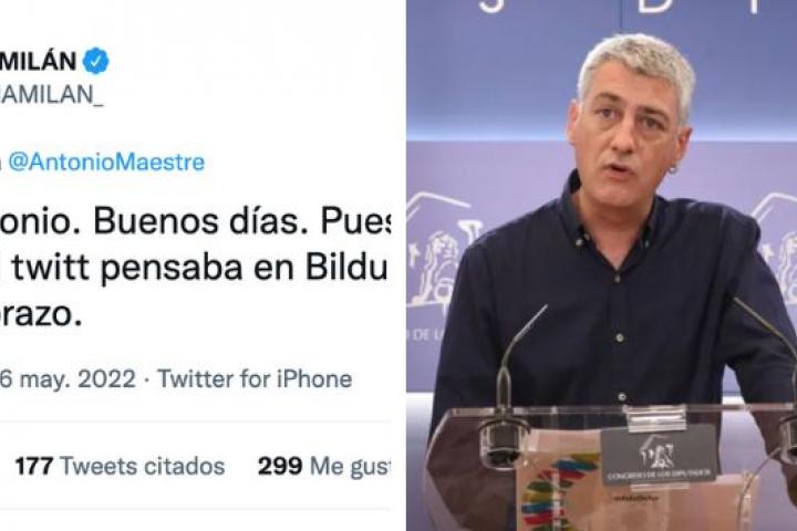 Pero la cosa no ha quedado ahí, Oskar Matute, diputado de Bildu en el Congreso de los Diputados, ha respondido al tuit que Ana Milán ha escrito sobre la formación a la que representa.