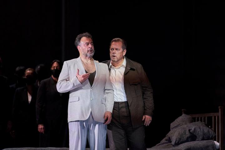 Sin embargo, ya se ha dicho que hay muchos momentos de esta producción donde deja de interesar el aspecto técnico o simplemente reproductivo. Lo que importa es lo que sucede en escena. No solo por su conocida historia. Una historia de celos en la que Otelo desconfía de la fidelidad de su esposa, Desdémona, tras las sospechas que es capaz de instilarle el malvado Yago sobre una relación de ella con el tontuelo, pero joven y exitoso Cassio (al menos en la imagen que se proyecta en esta producción).