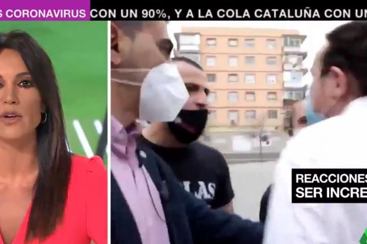Saavedra, en su informativo, introdujo la noticia así: “Pablo Iglesias ha hablado hoy sobre lo que ocurrió ayer en Coslada, Madrid, cuando miembros de un grupo de neonazis lo increparon. Iglesias, que se enfrentó a ellos, ha dicho que eso es lo que tiene que hacer un líder, plantar cara a cualquier neonazi. Los ha calificado como cachorros de Vox y Ayuso”.