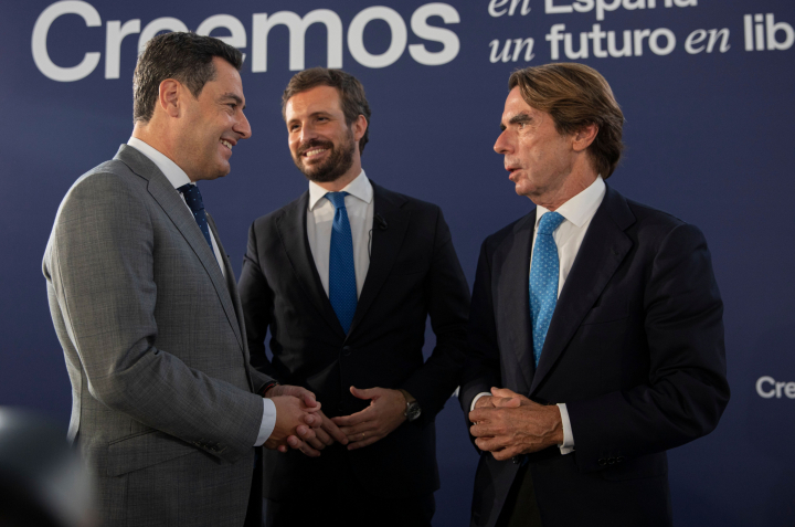 En esta batalla interna que se abre en el PP se vivió un capítulo muy doloroso para Génova durante la campaña por las palabras de José María Aznar, mentor de Pablo Casado. Escocieron expresiones como: “Hay muchas personas que se agarran a supuestas soluciones baratas, mágicas, a populismos mentirosos o falsos, porque no tienen un referente fuerte en el cual confiar”. Hace tiempo que el expresidente está muy alejado de su pupilo, la órbita de Faes pulula ahora más con Isabel Díaz Ayuso. Como le pasa a Esperanza Aguirre, que hasta en su perfil de Whatsapp tiene una imagen abrazándose con la actual presidenta madrileña.