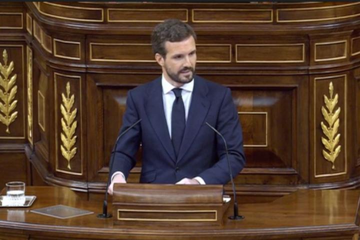 El líder del Partido Popular, Pablo Casado, ha condenado este miércoles desde el Congreso de los diputados los escraches a políticos, como los que recientemente han sufrido el vicepresidente del Gobierno, Pablo Iglesias, y la ministra Irene Montero en su casa o el ministro José Luis Ábalos.