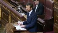 “Llevamos un mes y medio de drama nacional y esto no es una guerra, como le gusta comparar al Gobierno, esto es una catástrofe en vidas humanas, una hecatombe económica. Aunque se abuse de esa comparación y de comparecencias con uniformados que en demasiadas ocasiones se intentan ocultar, no se puede medir en términos bélicos porque nadie va a ganar. Todos los españoles ya hemos perdido demasiado”, ha empezado su discurso sobre la tribuna del Congreso Casado.