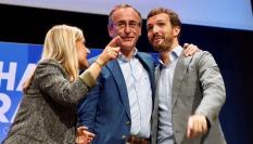 Casado ha animado a los suyos a “seguir la batalla” porque “a día de hoy los de Bildu siguen en el Parlamento vasco y en el Congreso”. “Han pasado a ser socios del PSOE en Navarra”, lo que considera “un insulto a las víctimas del PSOE”.