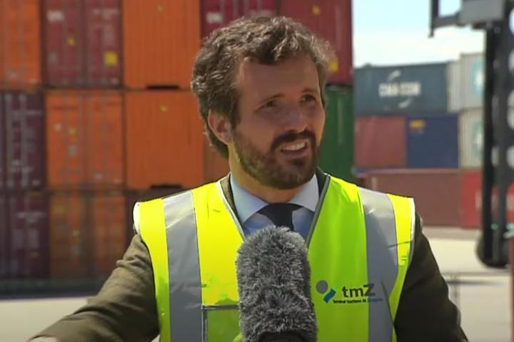 Pablo Casado, presidente del PP, ha generado un notable cachondeo en las redes sociales con la frase que pronunció este viernes durante una intervención en la Terminal Marítima de Zaragoza, donde fue de visita.