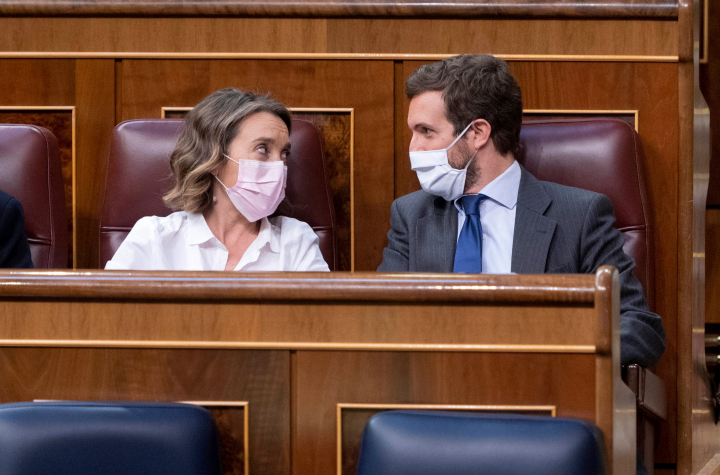 El todavía líder del PP, Pablo Casado, ha protagonizado una llamativa imagen este jueves, cuando ha acudido a su escaño para las votaciones del día en el Congreso.