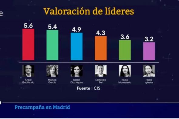 Sólo se habla de Iglesias en una ocasión, casi al final del reportaje, cuando se dice que es el candidato peor valorado de todos. El candidato de Unidas Podemos tiene un 3,2 y se coloca por detrás de Monasterio con un 3,6. Encabeza el ranking Gabilondo con un 5,6 y Mónica García, con un 5,4. Ayuso casi aprueba (4,9) y Bal se queda en un 4,3.