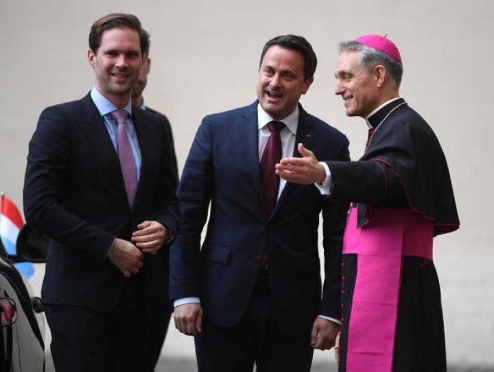 Como vemos en la imagen a continuación, Bettel y su esposo fueron recibidos por el arzobispo Georg Ganswein a su llegada al Vaticano.