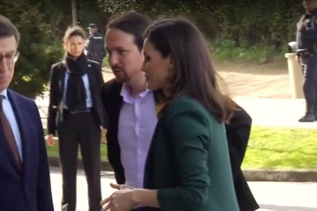 En el reportaje del programa de Cuatro, se puede ver cómo Iglesias llega a donde se encuentra la reina Letizia junto a Alberto Núñez Feijóo, presidente de Galicia.