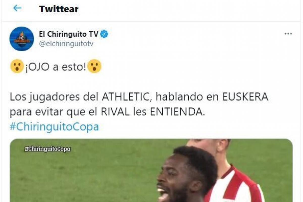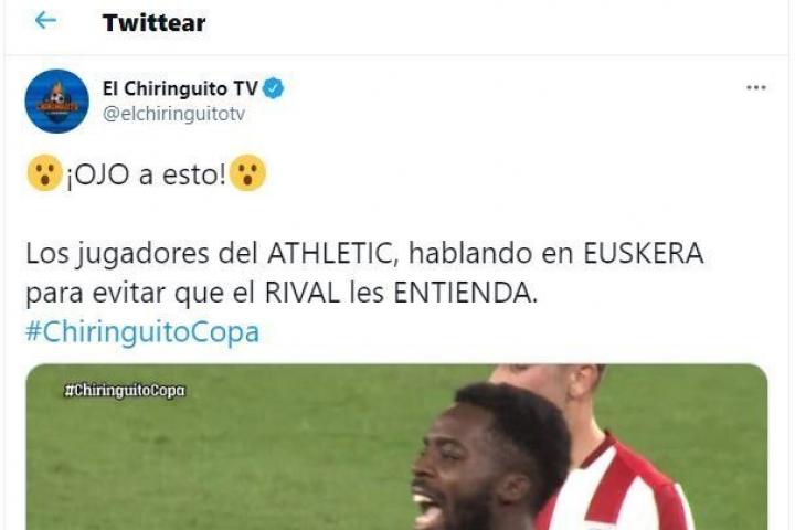 El Chiringuito, el programa deportivo que presenta Josep Pedrerol, ha dado muchísimo de qué hablar después de publicar un tuit en el que se leía: ”¡OJO a esto! Los jugadores del ATHLETIC, hablando en EUSKERA para evitar que el RIVAL les ENTIENDA”.