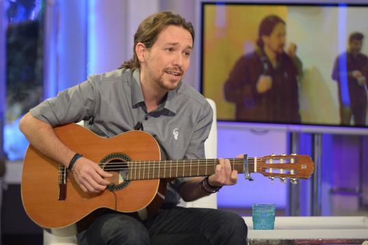 Pablo Iglesias votando y posando. O Pablo iglesias posando y votando.