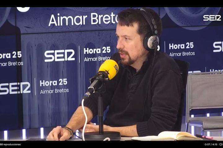 Pablo Iglesias se ha sincerado en El Ágora de Hora 25, sección de debate que comparte con García-Margallo y con Carmen Calvo dentro del programa que presenta Aimar Bretos en la SER.